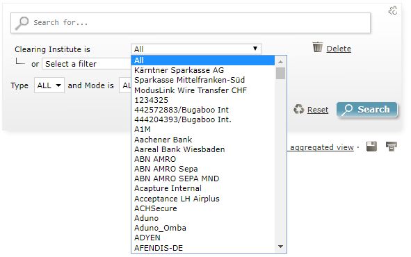 - Set filter = Bank Code/BIC and enter the desired code in alpha-numeric format: