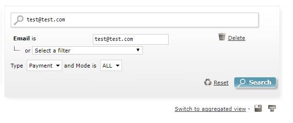 Switch to aggregated view: Switches the transaction results page to a view, where the transactions are sorted by different payment methods.